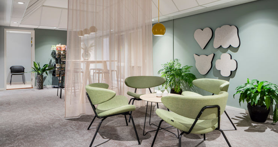 Medarbetarna behövde var sitt kontor där de kunde stänga om sig vid behov. Det stora konferensrummet gjordes därför om till flera individuella kontor. I stället för konferensrum skapades plats i kantinen där de kan samlas vid större möten.