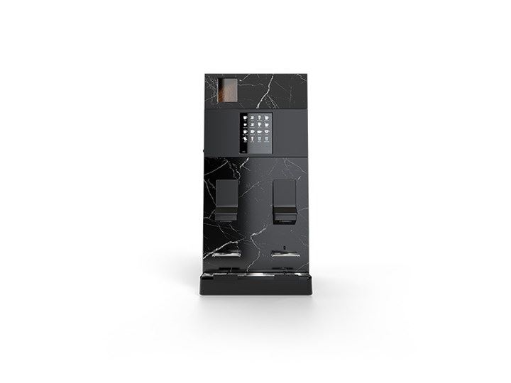 Öppna dörren så ser du en orange knapp som lyser på insidan. Slå av maskinen med denna knapp och vänta i 10 sekunder. Sedan slå på den genom att trycka på knappen igen. Maskinen behöver någon minut på sig att starta och skall sedan servera kaffe igen.